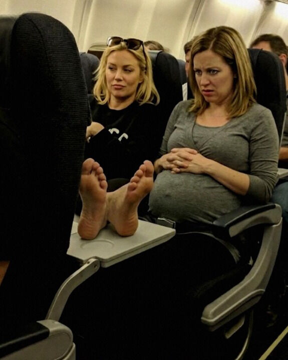 And she had both bare feet planted directly on my tray table.