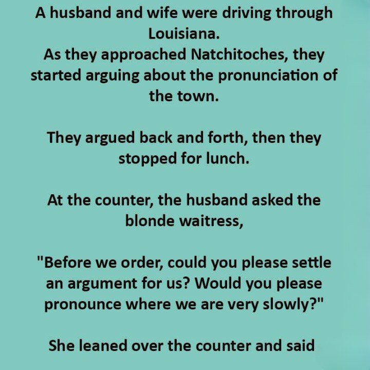 It didn’t matter how you said “Natchitoches.” It didn’t matter who was right. What mattered was how ridiculous they had both been, turning something so small into something so big.