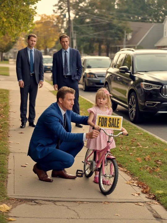 A little girl stood there, soaked to the bone, clutching a faded pink bicycle. It was scratched, worn down, clearly loved for years.