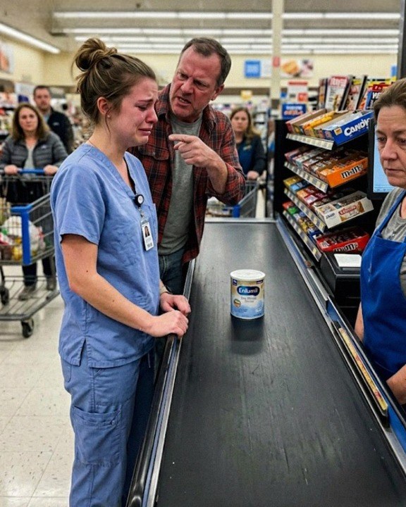 The nurse froze, clearly exhausted and humiliated. Her eyes filled with tears as she quietly started to put the formula back.