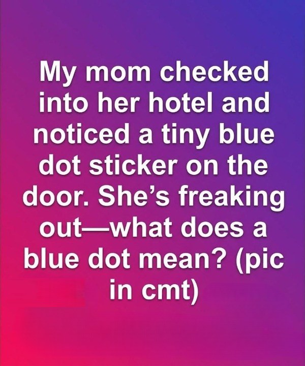 That’s exactly what happened to my mother during a recent trip. After a long day of traveling, she finally got into her room, only to notice something unusual. There was a small blue circular sticker placed discreetly on the door frame, something she had never seen before. In a clean, professional setting, it didn’t feel random. It seemed intentional. Even though it was tiny, it immediately raised questions. Was it some kind of code? A signal? Or just something left behind by another guest?