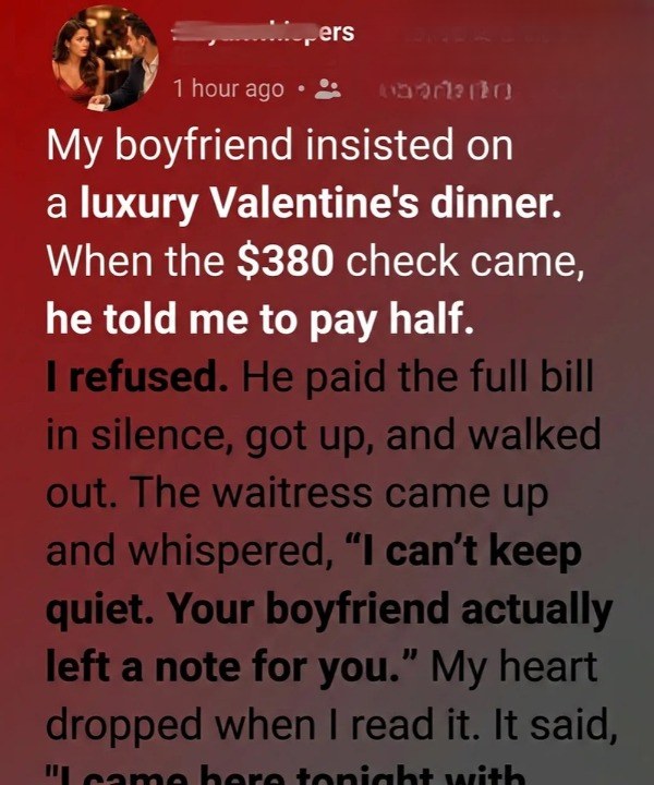 He explained that the evening had meant more to him than simply sharing a romantic dinner. He wanted to see how we would handle a moment of discomfort. How we would navigate a disagreement that appeared unexpectedly. Whether we could remain honest without turning the situation into conflict.
