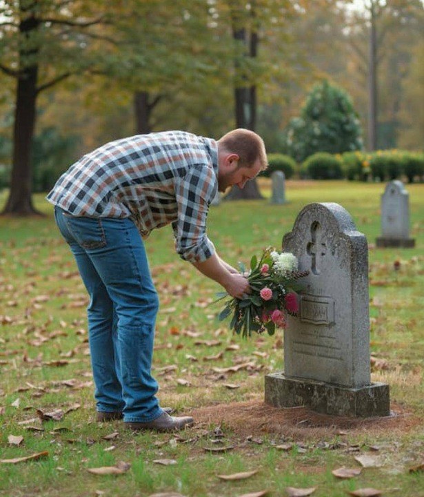 Matthew stood beside the headstone, one hand resting on it, the other holding a single rose. When he turned and saw me, his eyes filled just like mine.