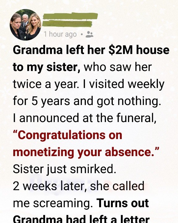 And for the first time since the funeral, I smiled—not out of bitterness, but clarity. Grandma hadn’t overlooked me.