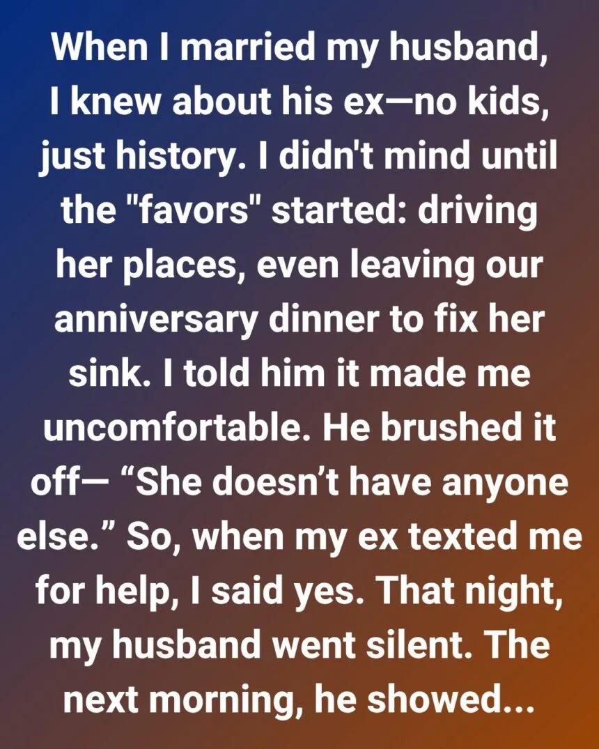 “Oh, by the way,” I said, “I’m helping my ex this weekend.”