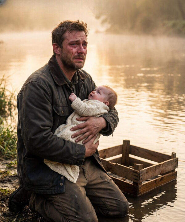By the time I reached the riverbank, the box was already drifting away. I waded into the freezing water without thinking, my clothes soaking through instantly as I pulled it back to shore.