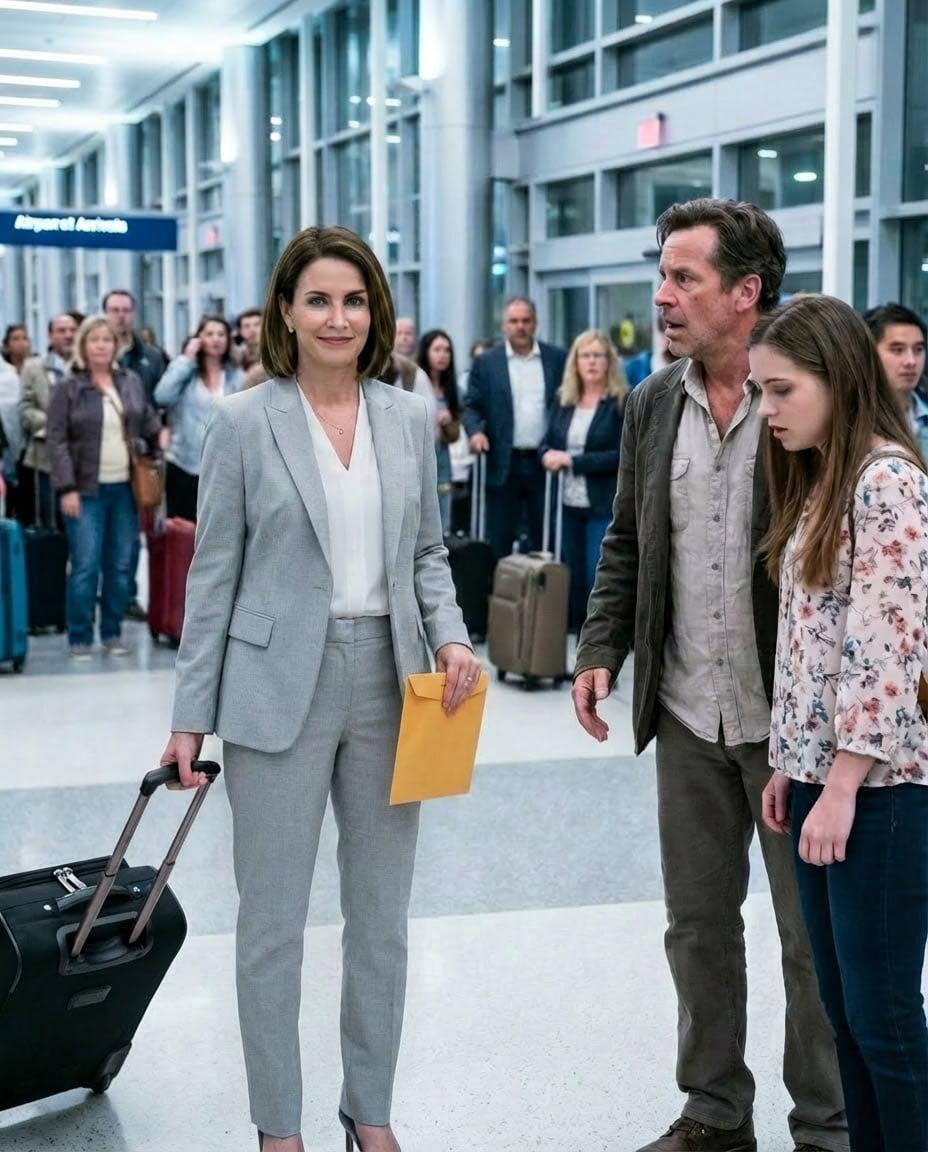 I had just stepped off the plane, my suitcase still in my hand, when I halted so abruptly that the man behind me grumbled. Across the arrivals area, under a glowing airline sign and surrounded by travelers hauling bags and embracing loved ones, stood my husband, Daniel. His arm circled his secretary, Melissa, with a familiarity that didn’t belong to confusion. She leaned into him, smiling as if she fully belonged there. Then Daniel lifted his gaze and saw me.