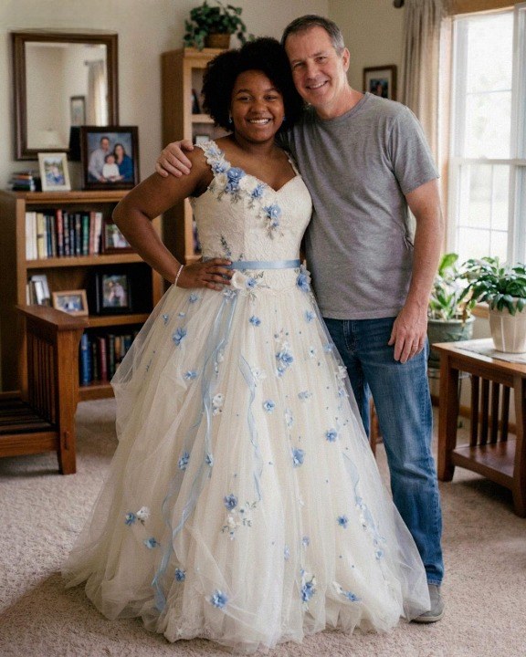 Posted on April 12, 2026 By jgjzb No Comments on My Dad Made My Prom Dress from My Late Mom’s Wedding Gown — My Teacher Mocked Me Until a Police Officer Walked In