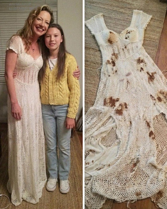 The moment I opened the closet door, I knew it hadn’t been an accident. The bodice had been torn apart, not snagged. Stitches ripped out in jagged, angry lines. And across the skirt was a dark red stain that didn’t look spilled.