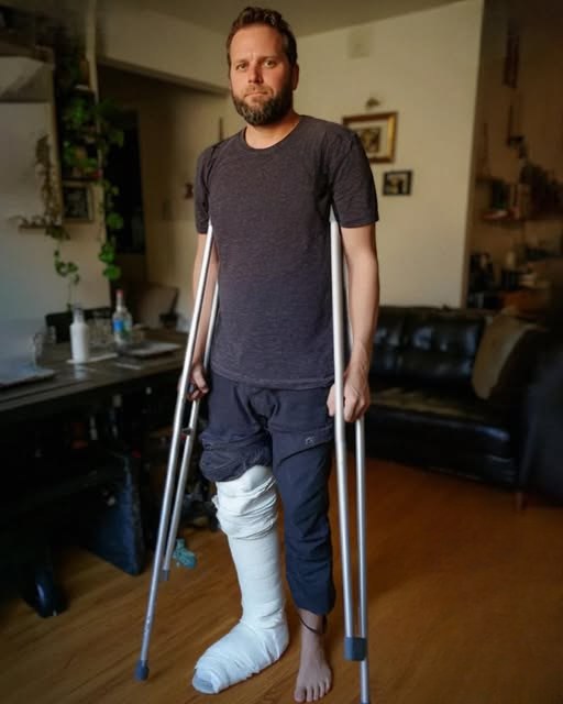 Then, the night before we were supposed to leave, he came home late. I heard the door open, followed by a heavy thud against the wall. When I stepped into the hallway, he was standing there on crutches, his leg wrapped in a thick white cast.