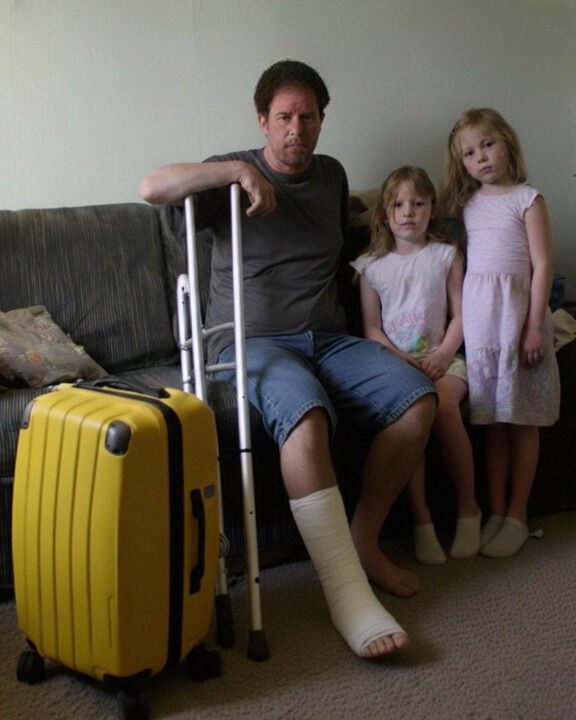 My husband sat on the couch, his cast propped up, acting like everything was normal.