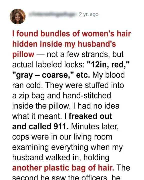 Inside the pillow were small, neatly arranged bundles of hair, tied together with care.