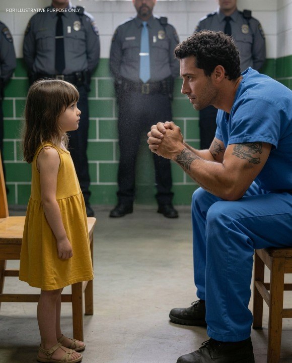 Emily arrived later that morning. She walked quietly through the prison corridors, calm and serious beyond her years. When she entered the visiting room, Daniel was waiting for her in shackles, thin from years behind bars, wearing an orange prison uniform.