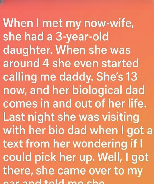 “He kept saying you’re not my real dad,” she whispered. “That I shouldn’t call you that.”