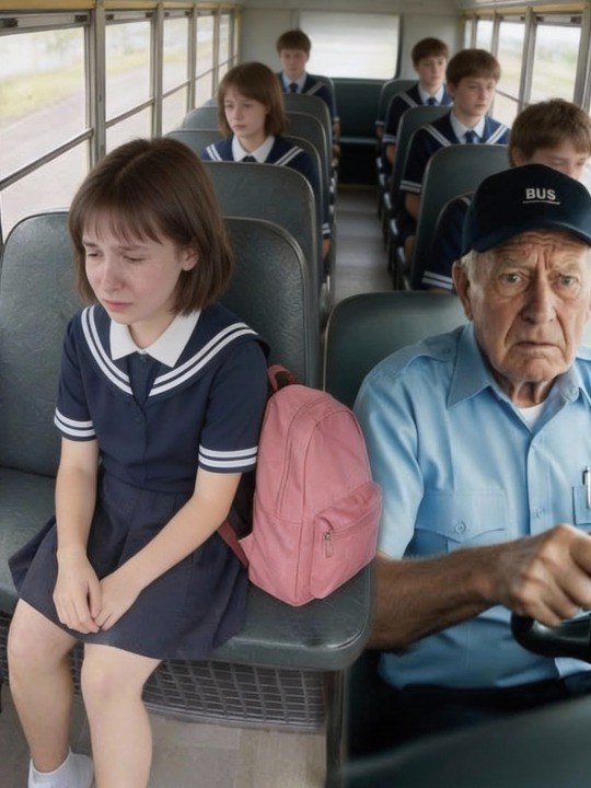 Emily was ten, small for her age, with straight brown hair pulled back too tightly. She always boarded at the same stop in front of a peeling blue house with an overgrown hedge. She never ran, laughed, or complained. She climbed the bus steps slowly, eyes down, and settled into the third seat on the right, halfway back. Always the same seat, always the same posture, shoulders hunched, hands folded in her lap.