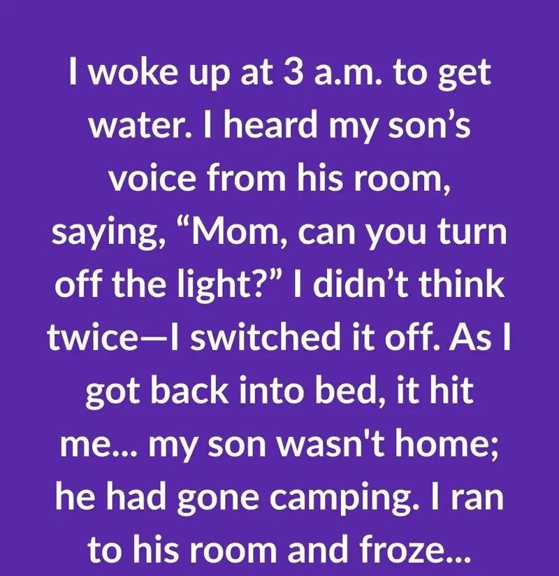 I woke up at 3 a.m., my throat dry, my mind still foggy with sleep. The house was quiet as I walked down the hallway toward the kitchen.