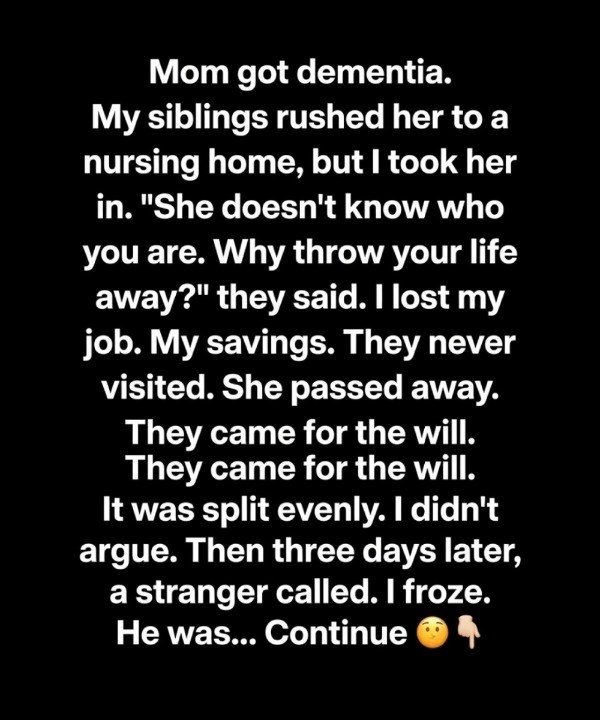 They said that love, without being recognized, eventually turns into resentment. That I was giving up the best years of my life for someone who, soon enough, wouldn’t even know who I was—someone who might see me as nothing more than a familiar face passing through.